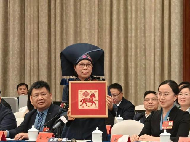 今年的全国两会上,有类似体验的代表委员不止杨钰尼一位。来自广西的蓝淋代表现场展示了一幅既有精巧高超的技艺,又有些“憨态可掬”的壮族刺绣作品。在她看来,正因让年轻人充分参与设计、绣品涵盖从70后到00后的创意,最终使文化瑰宝跟上了时代节拍,在与机绣的激烈市场竞争中站稳了脚跟。李利代表则关注到少数民族非遗文创产品在电商平台拥有的巨大潜力,她不仅在直播间里取得了成功,在直播间外也推动开展各类培训,吸引热爱民族服饰并具有创新精神的年轻人加入团队。